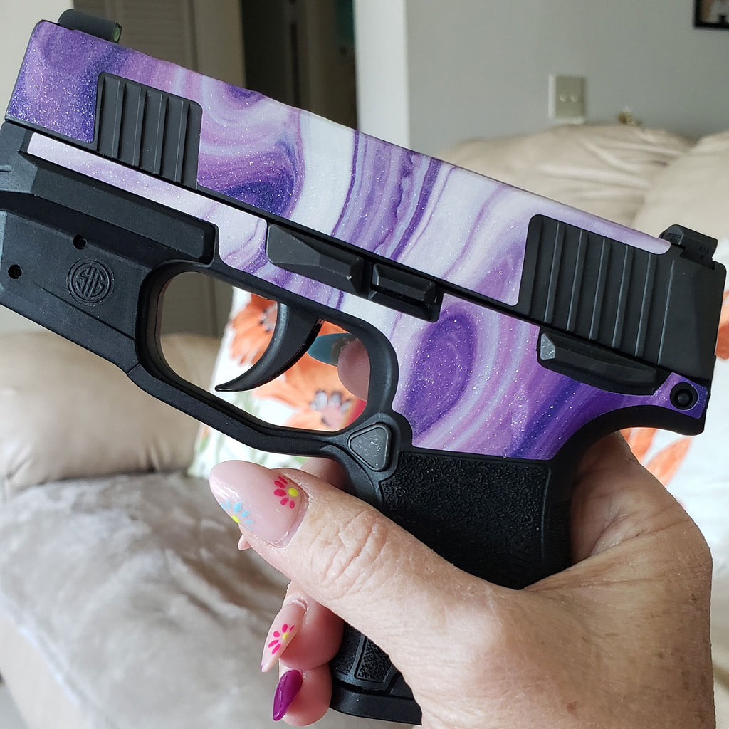 This was sooooo easy to install. It helps that the pieces are already fitted to your gun, which saves a huge amount of time. You might need to cut out a small part here or there with your blade, but that was a piece of cake as well. It's really cute and totally changes the look of your gun. I like that it's not permanent and I can switch it out when I decide to change color holsters. Don't hesitate to try it, you won't regret it.